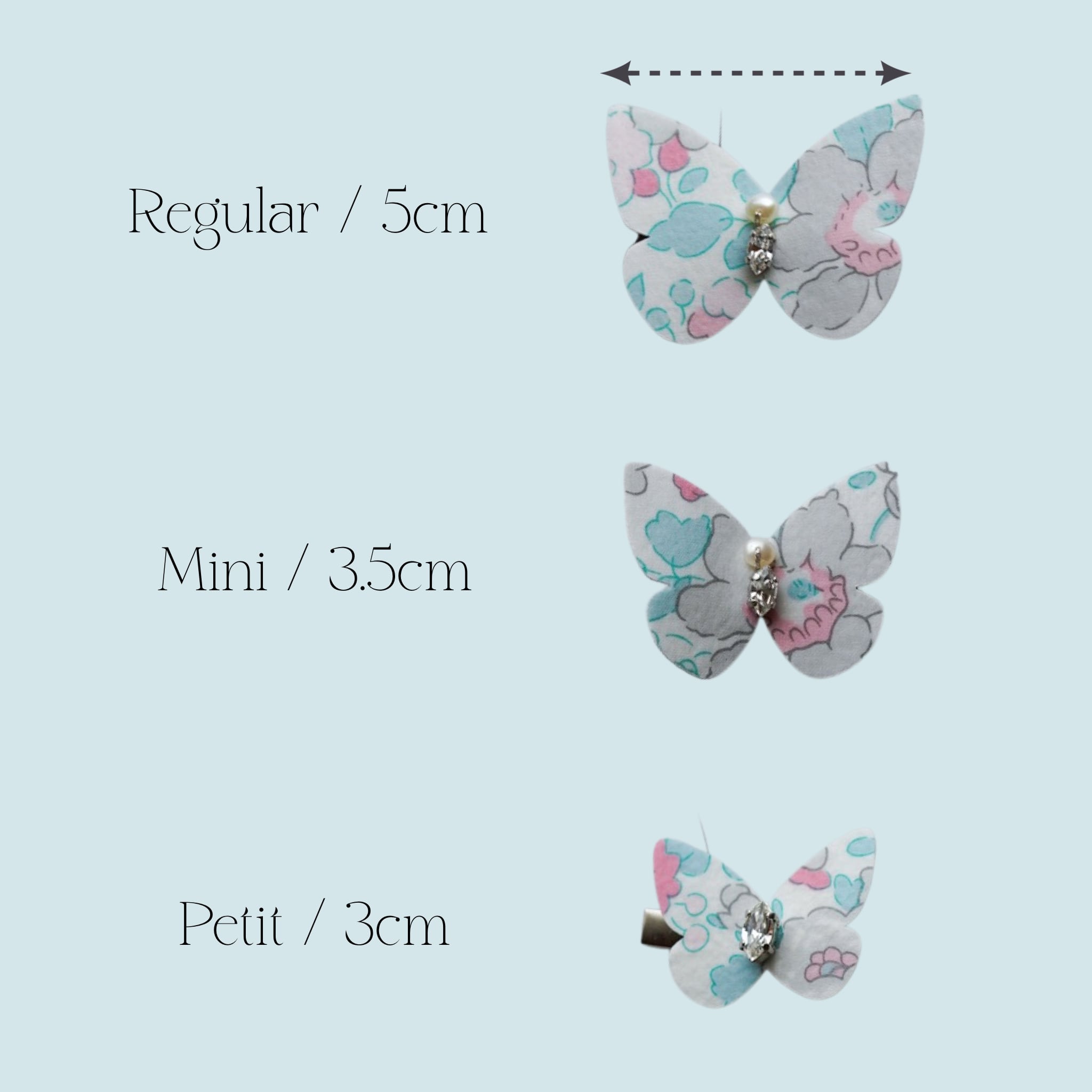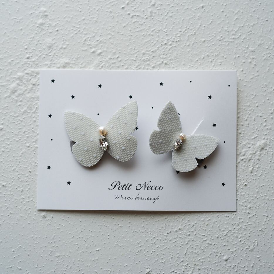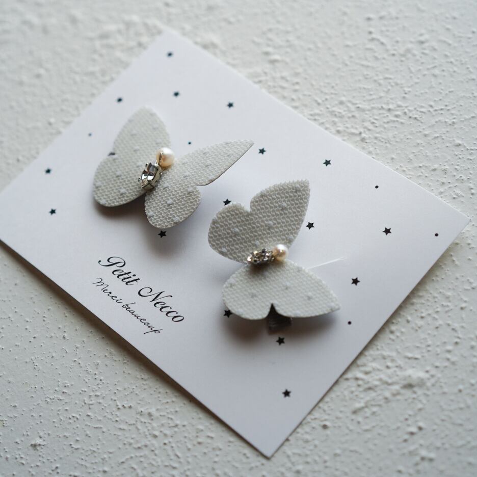 ひらりと蝶がとまっているかのように見えるのがとても可愛いクリップ。お好きな位置に蝶をとまらせていろんなアレンジを楽しんでいただけると嬉しいです