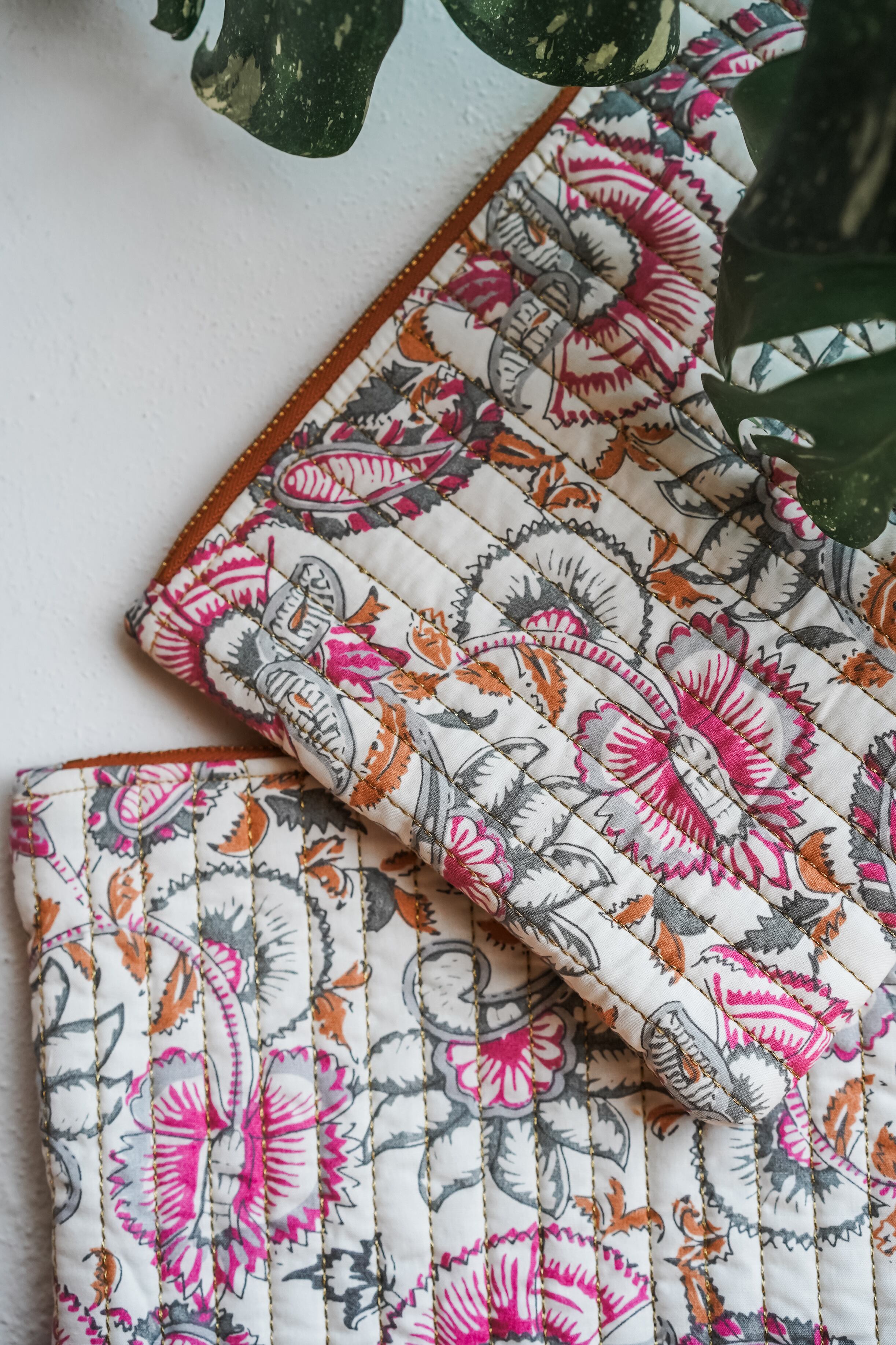 • インドらしいブロックプリントの華やかな花柄が、持っているだけで気分アップ
